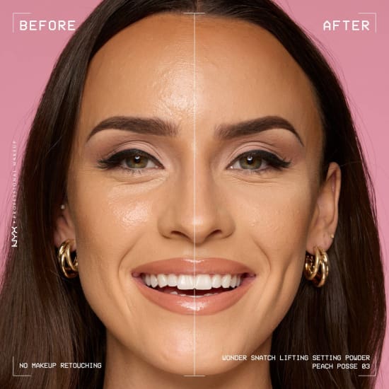 NYX Professional Makeup Wonder Snatch Loose Setting Powder is the ultimate finishing touch for a lifted, snatched look that lasts up to 16 hours. This silica-free and talc-free loose setting powder sets makeup, visibly brightens and smooths the appearance of skin for a flawless, soft-matte, airbrushed finish. Infused with green tea, rich in antioxidants and lifting peptides that help firm, smooth and protect skin, this lightweight setting powder perfects your complexion while caring for it. Expect shine control and all-day comfort with no flashback or cakiness.